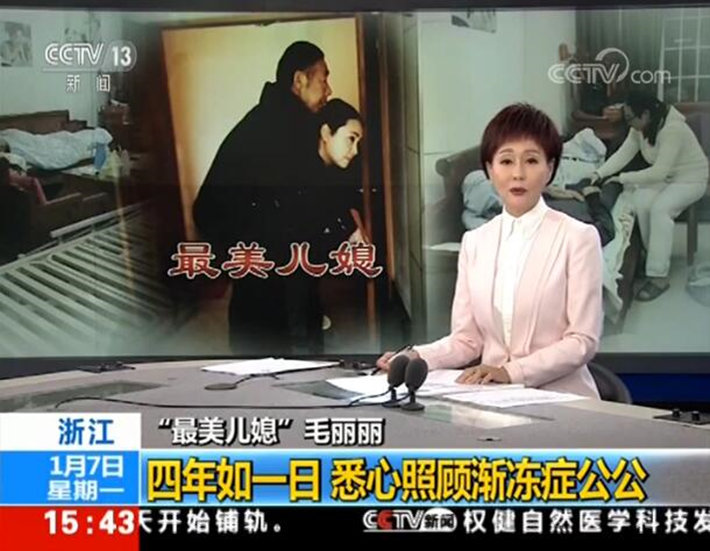 “今天的面孔是從一張照片開始的。春瀟,你覺得他倆什么關系?”“要是第一眼看呢,我首先會猜是女兒在背爸爸?!?月6日晚,CCTV新聞頻道《24小時》欄目中的“今夜面孔”部分,以《“最美兒媳”毛麗麗:背起公公 扛起家》為標題,報道了江山市32歲的兒媳婦毛麗麗悉心照料63歲患有漸凍癥的公公一事,時長15分22秒。