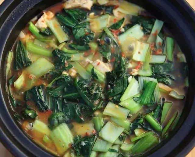 在馬金,青菜豆腐煲,是做喜事必上的一道菜。豆腐在煲上燉出小孔,湯料充滿整塊豆腐,非常入味。