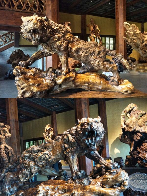 踏出博物館后將看到集趣齋,里面陳列的是徐谷青各時期根藝代表作,以及他的弟子們的獲獎作品,這些作品風格獨特、選材奇絕、創作精巧,滲透著強大的生命力,具有回歸自然的天趣美和強烈的歷史使命感?!?nbsp;
