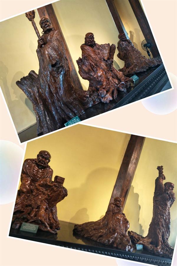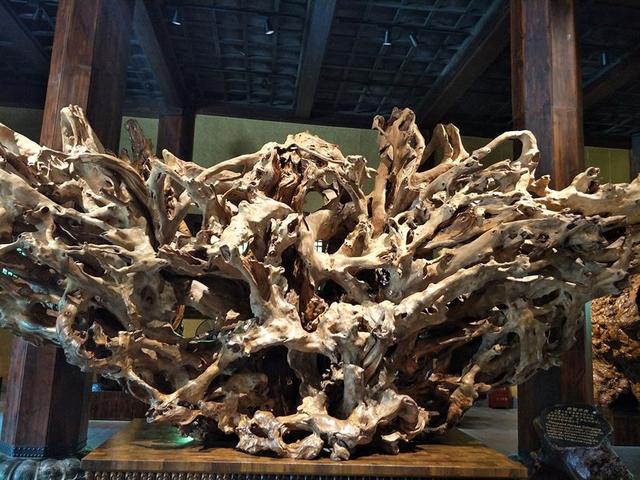 剛進博物館首先引入眼簾的就是靈山護法,它以千年香樟木根為樁,將各種法器神獸雕刻得十分逼真,充滿天趣美,是根雕藝術與佛教文化的完美結合?!?nbsp;