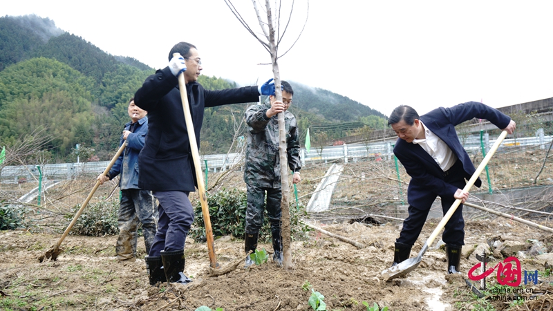 “種樹就是種錢,風景好了,游客就多了!”2月11日大年初七,春節假期后的第一個工作日,開化縣萬名干部群眾延續38年的“植樹拜年”接力賽正在進行。在該縣齊溪鎮左溪村的山坡上,92歲的村民程珠彬老人看到縣四套班子主要領導,帶領著黨員干部們一個個扶正樹苗、揮鍬鏟土、提桶澆水的場面,激動地與身邊的兒孫們講起自己“種樹”的故事。
