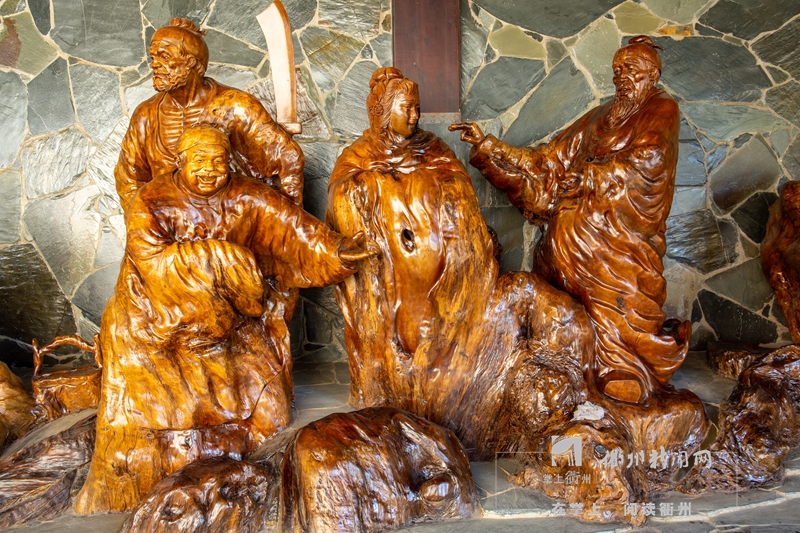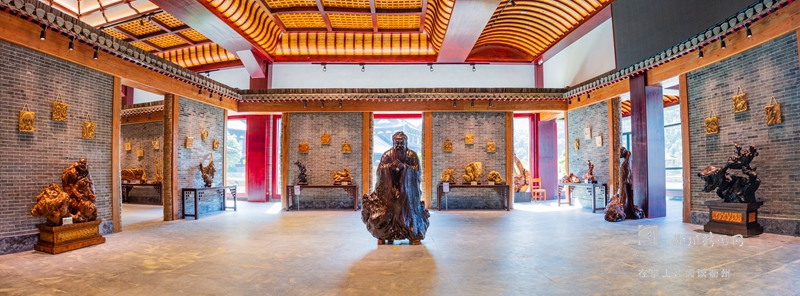 “華夏文化根雕藝術博物館,以上下五千年華夏文明為創作主題,通過根雕藝術作品來穿越古今,是一部巨型、立體的歷史文化教科書?!遍_化根宮佛國文化旅游區管委會管理處主任賴飛明說,該博物館包含“道行天下”館、歷史文化館、民俗文化館,并在周圍設有鐘、鼓、古琴、古箏、編鐘、編磬等六個主題角樓,營造了濃厚的詩書禮樂氛圍。