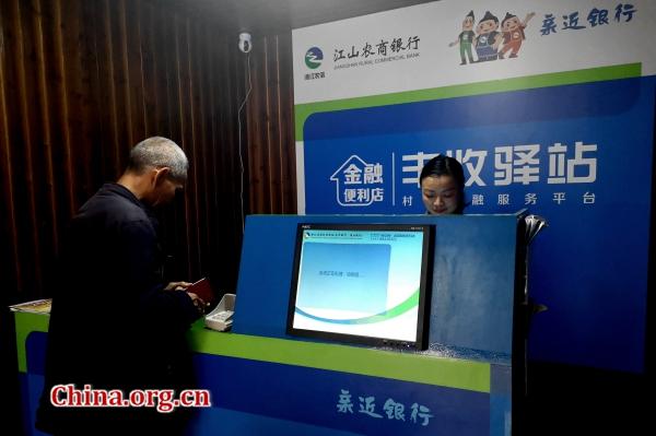 A local farmer is offered services at an outlet of Jiangshan Rural Commercial Bank in Quzhou, Zhejiang province, on Dec. 2, 2018. [Photo by Zhang Jiaqi/China.org.cn]