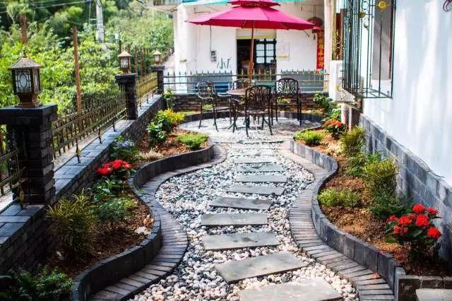 藍舍有難分難舍之意,至于藍色,是她本人的偏好。斜坡上花門,兩旁的繡球花形成花拱,遮陰避雨。步道盡頭,便是一座涼亭,坐于此處,龍潭公園美景盡收眼底,沏壺小茶,沐浴春風,便是愜意。