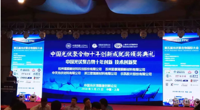 5月25-26日,2018第五屆光伏聚合物國際大會在上海隆重召開,巨化集團旗下的歌瑞公司憑借在技術創新上的優異表現,榮獲“中國光伏聚合物十年創新技術創新獎”。
