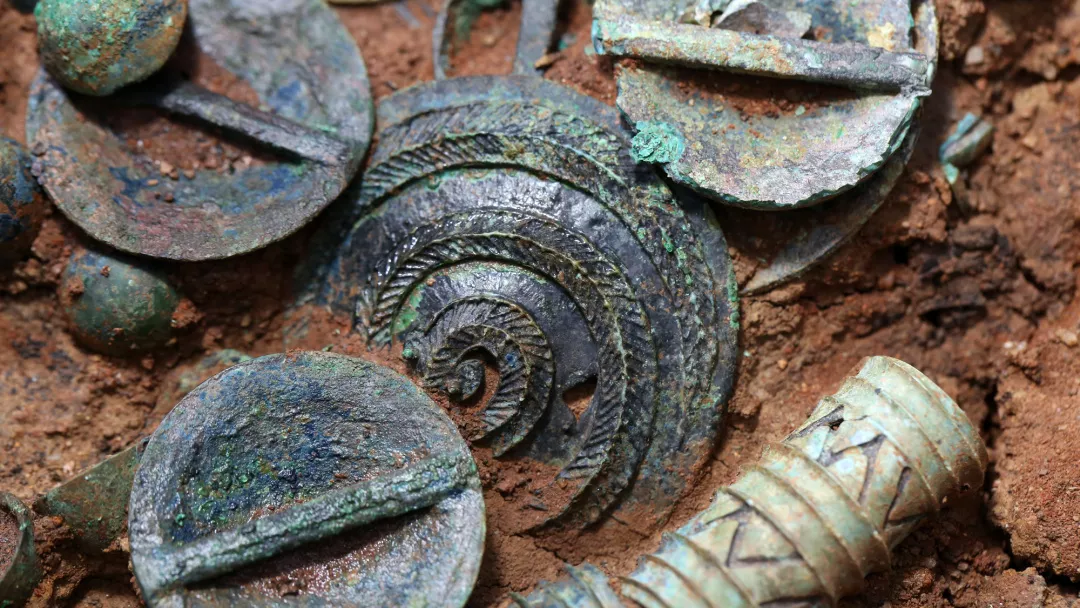 經過清理和分類,專家判斷這應該是四匹馬的馬具。如此品類繁多,實在驚人。