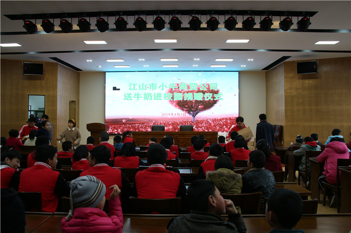 室外寒風凜冽,室內暖流陣陣。一場“愛心奶”捐贈儀式在報告廳內舉行,江山市培智學校負責人代表學校感謝小牛商貿有限公司總經理毛卓榮的愛心之舉,全校師生共同見證了這場愛心行動。