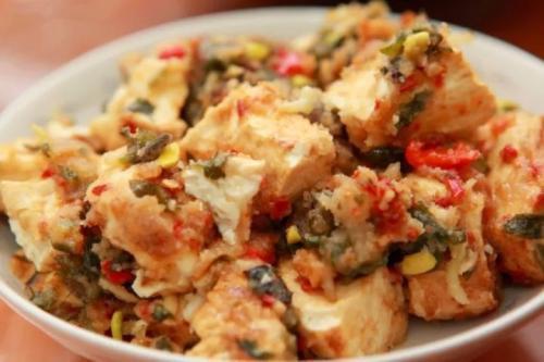 蘇莊炊粉:這是讓舌尖導演驚艷的一道特色菜。當紅紅的辣椒包蒸騰著熱氣端上來時,口水一下子就被那大紅的顏色激了出來。知道嗎,在開化的蘇莊一帶,所有你能想到的菜都能夠用炊粉做出來。蘇莊炊粉的其中蘊含著家庭主婦的智慧,包含著對家人發自內心的愛。開化山高林密,農忙時節主婦們既要幫助家里的男人上山干活,又要操持家務保證讓一家老小吃上熱乎飯。早上出門前,主婦們會將要蒸的菜或肉洗凈切好,拌上米粉、油鹽、辣椒等調料,放到飯甑里蓋嚴,隨飯同蒸。等到傍晚一家人收工回來時,一碗碗香噴噴、色香味俱全的炊粉菜就是最好的犒勞品。