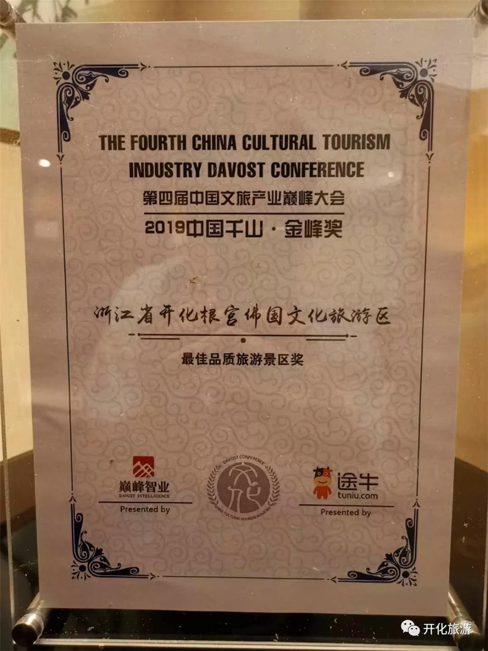 近日,在北京召開的第四屆中國文旅產業巔峰大會上,開化縣根宮佛國文化旅游區榮獲2019年“最佳品質旅游景區獎”。開化縣文化和廣電旅游體育局局長金樹明出席此次頒獎典禮。