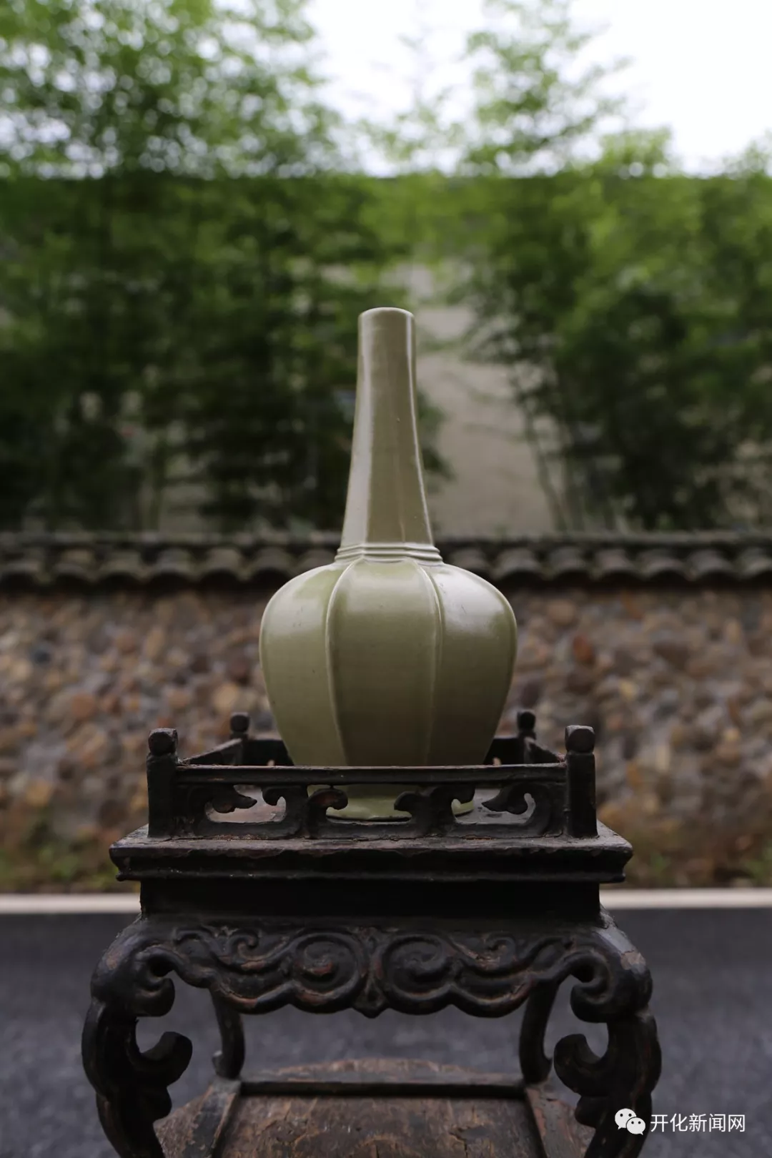 ▲開化青瓷工藝制出的八棱凈水秘色瓷瓶▲