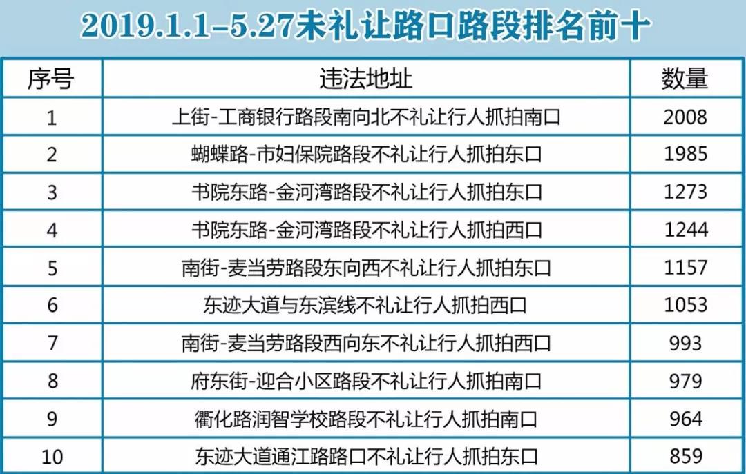 交警部門統計發現,在上街—工商銀行路段、蝴蝶路——市婦保院路段、書院東路——金河灣路段等10個路口路段,共抓拍未禮讓行為12515起!約占總數的1/2!