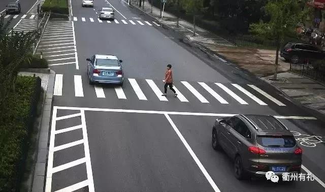 提醒:開車經過斑馬線要提前減速,隨時做好停車讓行的準備。行人剛踏入斑馬線,第②③車道車輛必須讓行,行人往前走,所在車道和下一車道車輛必須讓行。