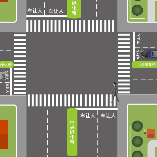 情況四:經過無交通信號或斑馬線的路口也要讓行