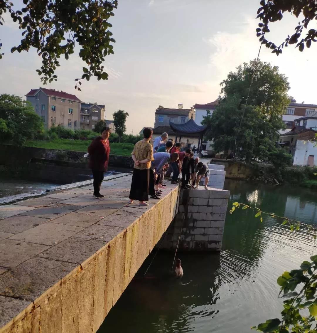 “快點,把你車子拉上來!”吳水華是村中黨員,二話不說脫光了衣服,跳下石梁溪。石梁溪流經柘川的這一段并不是很深,大約50公分。吳水華在村中其他黨員和村民的協助下,拿來繩子綁在了車外架上,讓岸上的人往上拉,吳水華和車主在水里推。