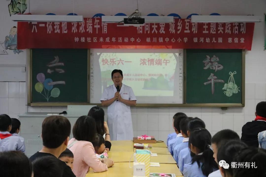 5月31日下午,柯城區鐘樓社區的未成年人活動中心正與峽川鎮中心小學鄉村少年宮共同開展“六一你我他,濃濃端午情”主題實踐活動。來自城區與鄉村的孩子們歡聚一堂。鄉村學校少年宮老師正在給家長和孩子們講述端午節的由來和習俗,老師講得認真,大家聽得專注,端午節便從神話傳說里,從唐詩宋詞里,從歷史煙雨里緩緩走來,傳統的氣息,節日的氣氛和暖暖的幸福感,就在這娓娓道來的講述里彌漫身旁。