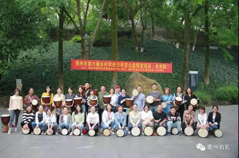 5月28日上午,衢州有禮“相同關愛·關愛鄉童”鄉村學校少年宮公益師資培訓在府山公園舉行。本次培訓的課程是非洲鼓,由專業的打擊樂老師老師執教,來自各縣(市、區)的20多所鄉村學校少年宮的近40余名老師參加。