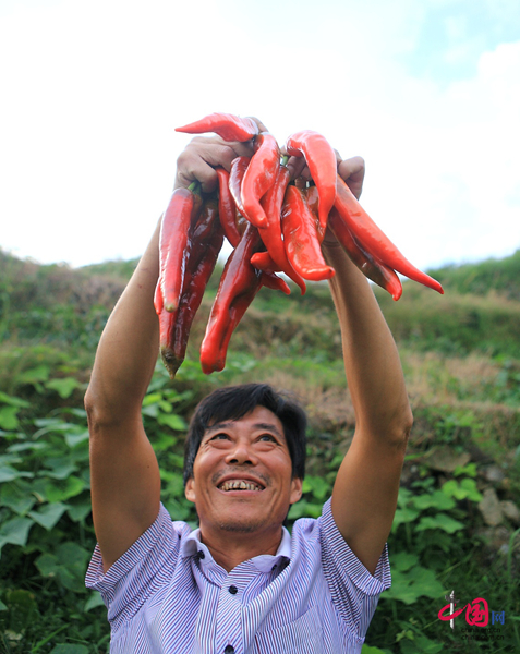 “這兒之前是種水稻的,現在每年都要舉辦辣椒節?!备呱妩h支部書記張順良指著一片片高山辣椒說,“高升村集體幾年前從村民手中流轉了這片土地,種下了這片辣椒。辣椒生產期長,產量也高,每畝地能產4000—5000斤辣椒,收益比種水稻高了不少?!?/p>
