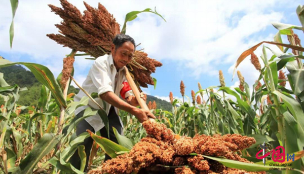 開化縣大溪邊鄉作為縣內聞名的紅高粱小鎮,蜿蜒曲折的高山梯田現在已經被火紅的高粱覆蓋,家家戶戶都飄出令人沉醉的酒香。近年來,“春賞油菜花、秋看紅高粱”成為源頭山村的一張“金名片”。