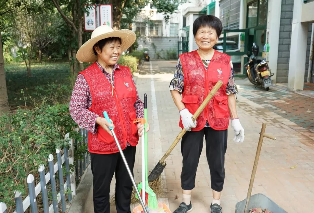 10月11日早上7點,新新街道金桂社區69歲老人余言姣拿著掃帚和畚斗,準時走出家門,開始清掃樓下的落葉和垃圾??粗@位老人忙碌的身影,不知情的人還以為是小區物業聘請的保潔員,其實她是社區的創文志愿者。