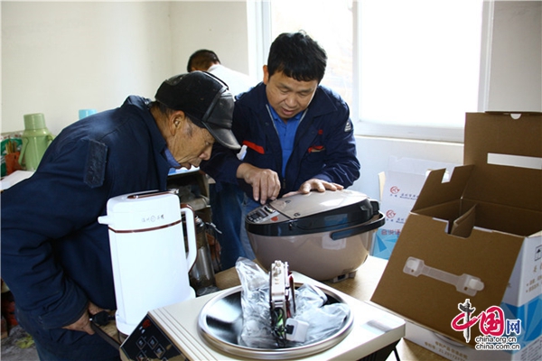 和王高全一樣高興的還有隔壁黃家村的殘疾人劉志根,雙塔街道殘聯專職委員王滿玉帶著廠家技術人員上門為他送無障礙電器,智能語音凹盤電磁爐、音樂閃光報警水壺、盲文語音電飯煲和收音機,這一件件家用電器溫暖了劉志根的心。