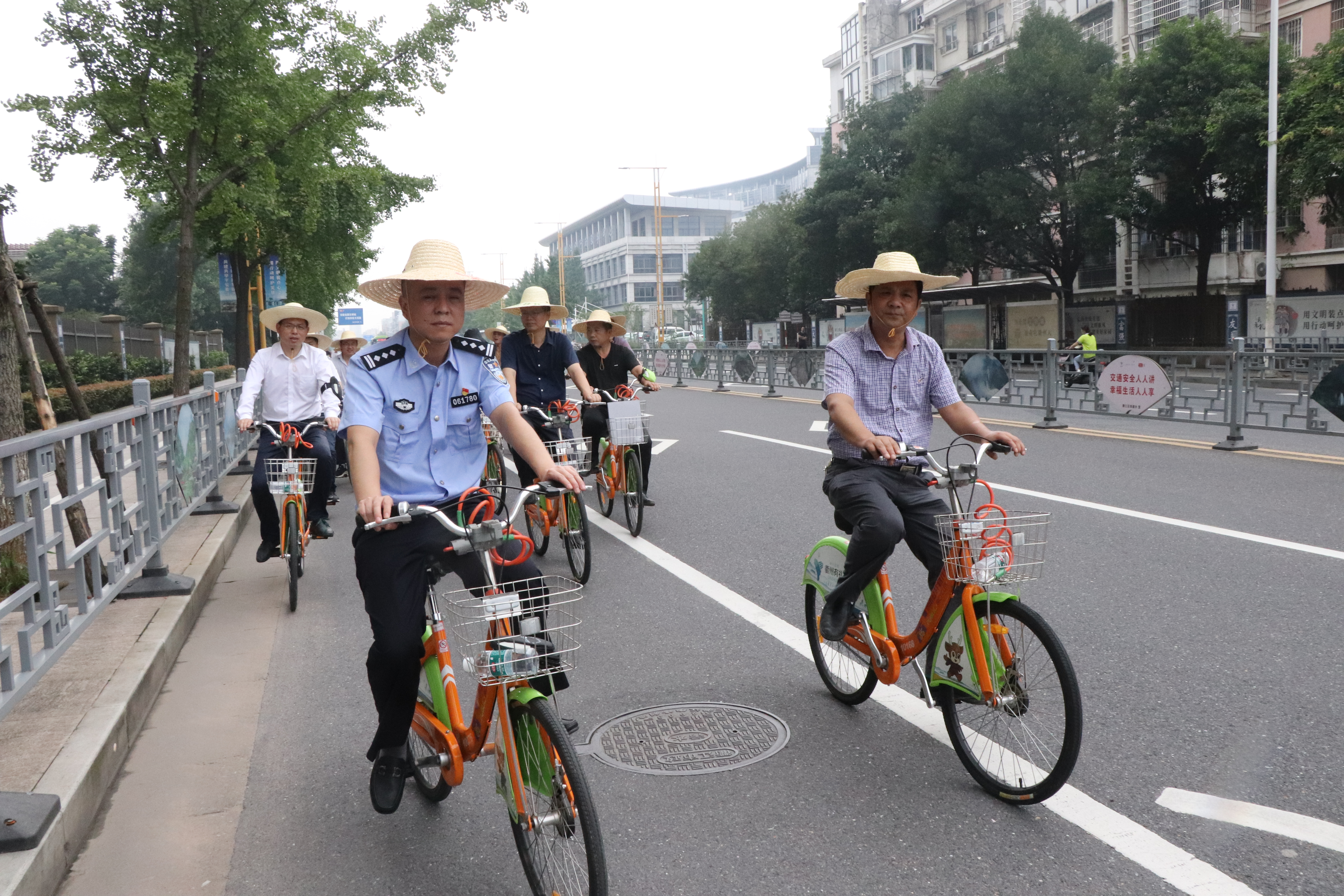 這支由區創建辦、區交警大隊、區交通運輸局、區住建局、區綜合執法局、區市場監管局、區建投公司、樟潭街道組成的自行車騎行隊,經常對衢江城區創文進行自查自糾。