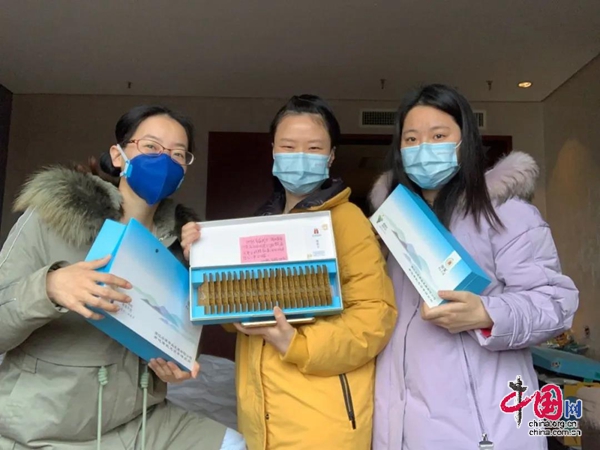 徐慧和隊友們收到的龍頂茶,就是開化縣龍頂名茶協會代表36萬開化人民送給馳援武漢戰疫一線最美逆行者的春天問候禮包。每份禮包里的20包 “開化龍頂”名茶,是開化今春最早、最珍貴的頭采春茶,由近20位采茶工花了5個多小時精心采摘,并由省級非物質文化遺產傳承人連夜炒制而成,經“縣新冠肺炎”指揮部統一安排空運至武漢。