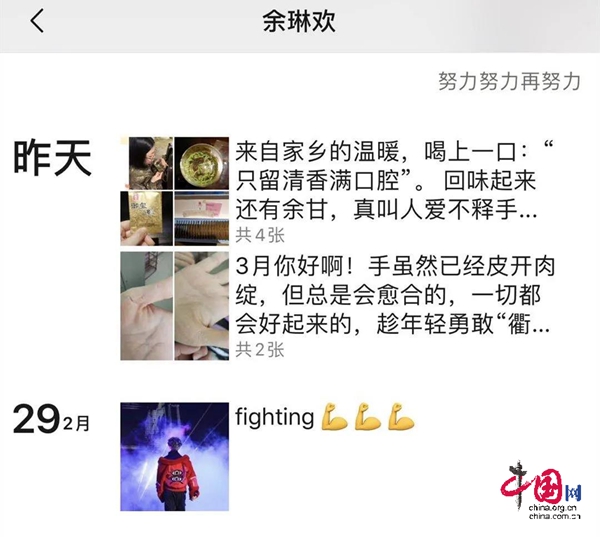 當天余琳歡在自己的朋友圈還發了一條微信:“3月你好??!手雖然已經皮開肉綻,但總是會愈合的,一切都會好起來的……”凌晨3點上班,上午9點下班,然后三班倒,就這樣連續工作一個多月。
