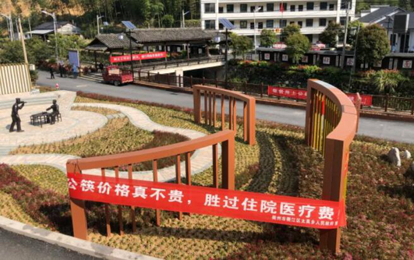 記者在竹埂底村看到,新修訂的《村規民約》已經制成掛圖設置在村里最顯眼的位置上。村莊道路兩側的花壇里也都放置了各種各樣的文明標語標牌,倡導使用公筷公勺的橫幅懸掛在村口最醒目的位置。鄉、村干部和網格員們忙著在村頭村尾講新規、送公筷,為村民送去了“新風”。