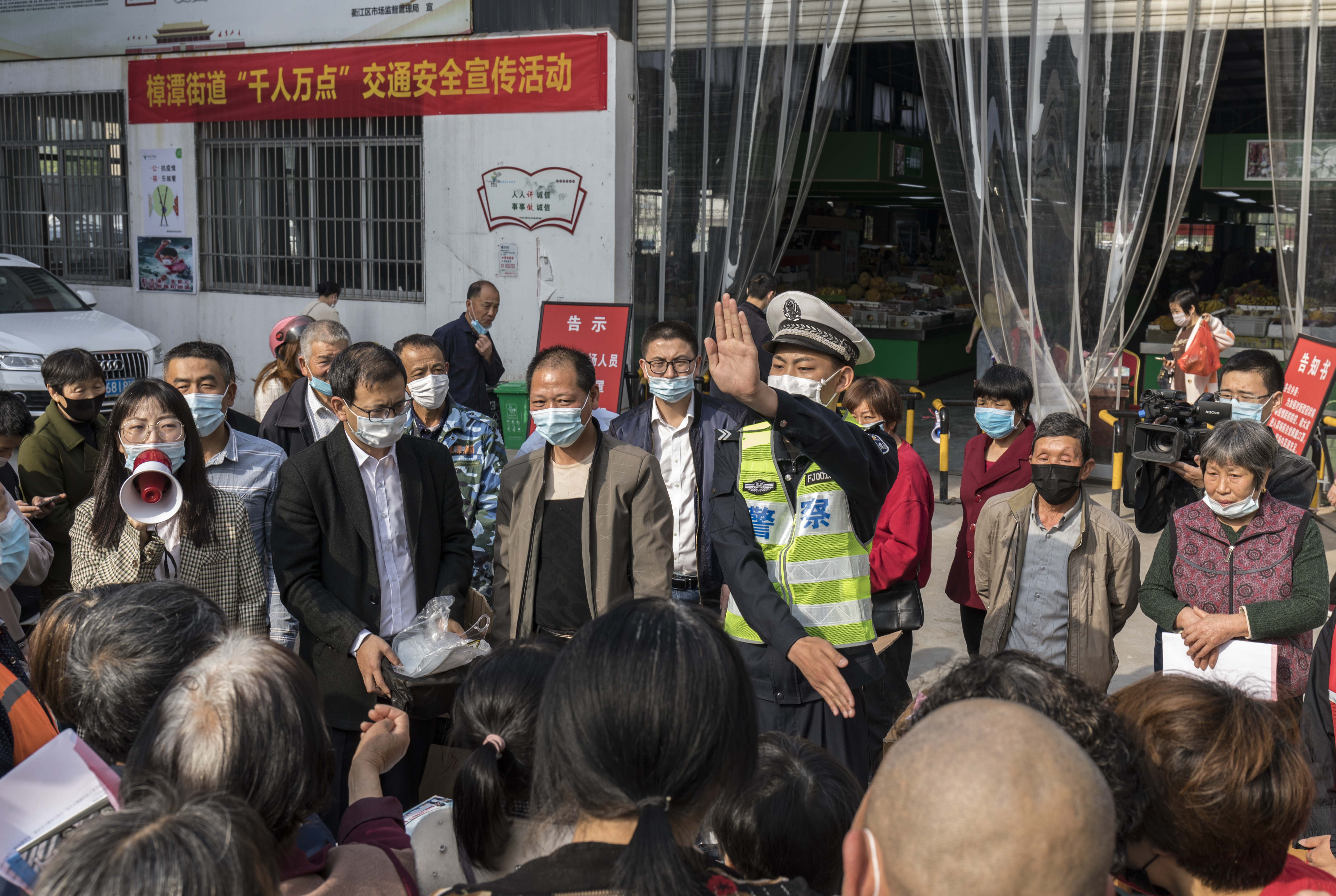 “碰到又有交通信號燈又有交警的時候,該聽誰的?……”4月17日上午,沈家臨時菜市場門口一場關于交通安全的有獎競答吸引了眾多路人,大家全情投入,比手速拼常識,氣氛緊張又熱鬧。