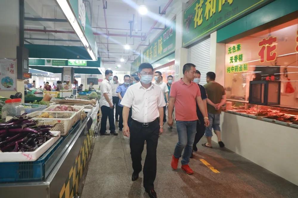 走進通浦路農貿市場,周向軍向工作人員詳細了解了人員配備、市場保潔、日常巡查等工作落實情況。他要求,要對照目標要求、對照考核指標,把標準抬高、把工作落細,不留死角、不留盲點,同時,要切實做好健康碼出示、測量體溫等各項防疫工作。