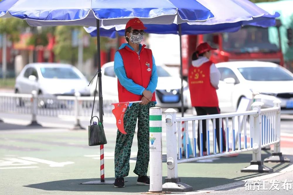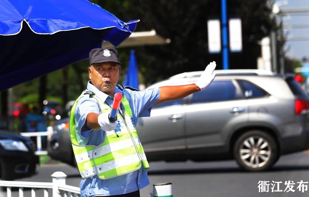 天再熱,人再累,也要把自己站成一棵樹。標準的手勢導引著人來人往,他們自己就是風景。