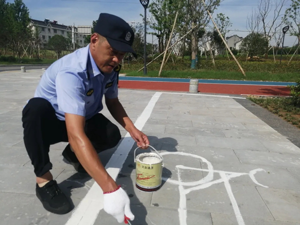 頂著烈日,冒著37度的高溫,徐永勝帶領另一名執法輔助人員吳金鎧拎著幾桶油漆、幾把刷子、兩雙棉紗手套就上路了。路面的高溫炙烤著,當空的烈日暴曬著,汗水浸濕了制服,也滴灑在了每一道車位線上。一上午,老徐和助手共施劃車位12處,施劃面積90余平方米??粗粋€個有著自己“汗水味”的車位,老徐露出了樸實的笑容,笑呵呵的說:“熱點不算什么,為大家能停車盡點自己的力量!”