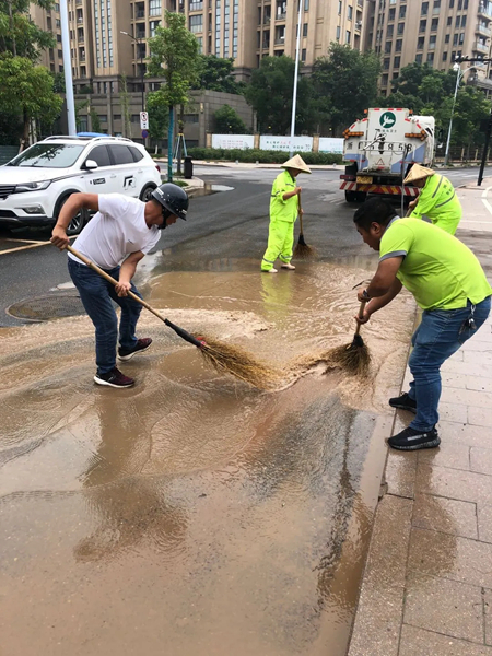 根據統計,7月上旬以來,智慧新城總共投入保潔人員400多名,機械灑水車、機掃車等設備12輛,快保車13輛,清運垃圾將近200多噸。所有保潔人員從凌晨六點到晚上十點,全天候在崗。不管是主干道路,還是人行道拐角;不管是綠化帶旁,還是垃圾桶附近,都能看到他們的身影,他們是這座城市最舒心的一抹“綠”。