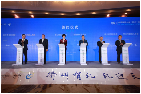 At the event, Kim Seung-ho, consul-general of the Republic of Korea in Shanghai, expressed his appreciation to Zhejiang and Quzhou governments for valuing the development of South Korean companies locally and giving them valuable help. He spoke highly of Zhejiang's achievements in various sectors such as e-commerce, artificial intelligence, and automobile, and gave praise to fruitful results from economic cooperation between South Korea and Zhejiang.