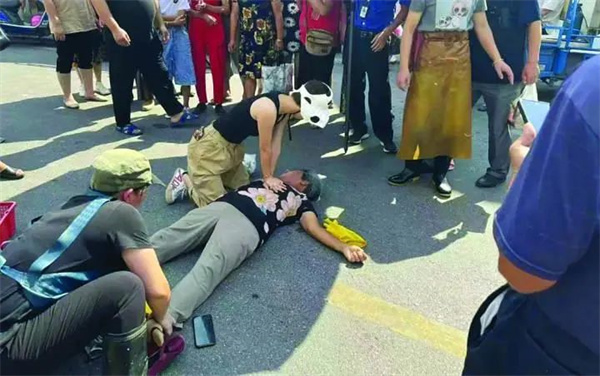 8月10日上午9點多,開化縣第二人民醫院急診室護士周璇出門經過華埠菜場看見很多人在圍觀,經詢問得知有人突發暈厥倒地不起,據現場群眾反映已經撥打了120。