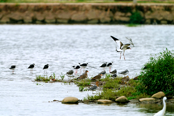 黑翅長腳鷸為國家三有保護動物,主要棲息于開闊平原草地中的湖泊、淺水塘和沼澤地帶。它們常單獨、成對或成小群在淺水中或沼澤地上活動,主要以軟體動物、蝦、甲殼類、環節動物、昆蟲、昆蟲幼蟲,以及小魚和蝌蚪等動物性食物為食。黑翅長腳鷸春季于4月初至5月初遷往我國北方繁殖地,秋季于9-10月離開北方繁殖地往南遷徙,常成群遷徙。此次應該是南遷途中,看中了白鴿湖優良的生態環境,豐富的食物來源,所以在此中轉休憩。