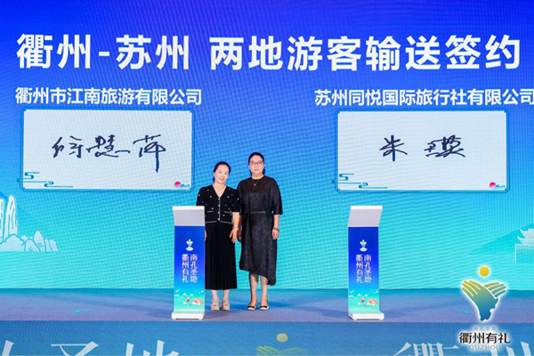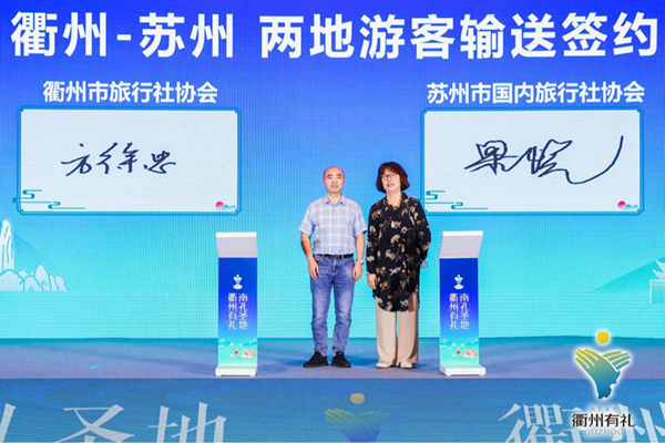 在一系列利好政策的推動下,衢州市旅行社協會與蘇州市國內旅行社協會;衢州市江南旅游有限公司與蘇州同悅國際旅行社有限公司達成戰略合作并現場進行簽約。