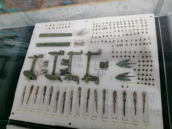 圖為在廟山尖土墩墓中出土的部分青銅車馬器。新華社記者馮源攝