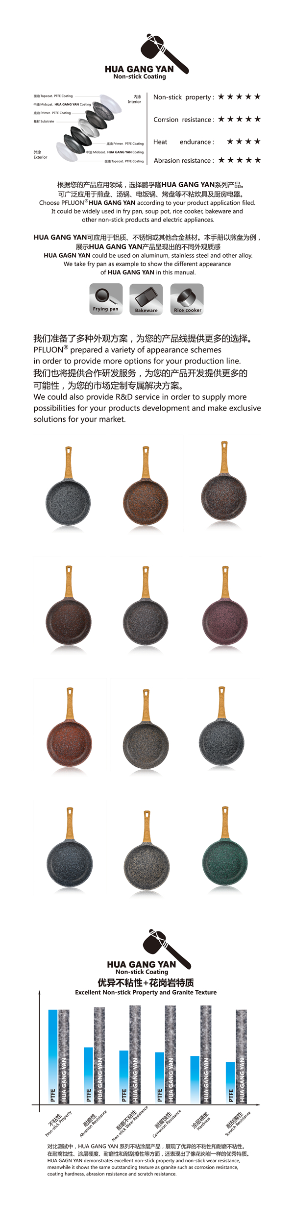 Zhejiang PFLUON New Materials Co., Ltd was established in 1989,engaged in R&D and production of non-stick coatings and provides non-stick coating products and services. As one of the globally leading suppliers of non-stick coatings, the company has the globally largest automatic production base of non-stick coatings. It has an industrially first-class R&D team, with several industrial experts who have worked in the industry for over 20 years. It is a nationally accredited high-tech enterprise.We stick to the R&D,promotion of new products, process and technologies while promoting the quality competitiveness of traditional products.As the innovative products have been produced continuously, we have grown into the most innovative enterprise in non-stick coating area worldwide,our non-stick coatings have been successfully applied to cookware markets worldwide.