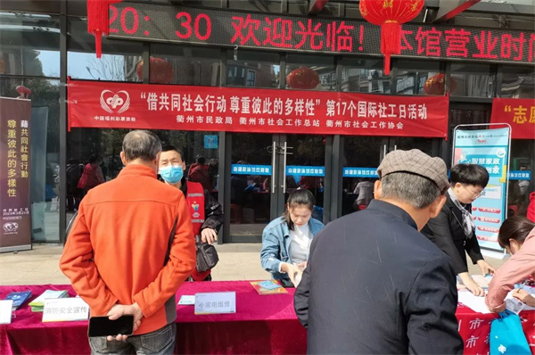 3月15日,為迎接第十七個“國際社工日”的到來,弘揚社工價值理念,根據民政部辦公廳發布的《關于組織開展2023年社會工作主題宣傳活動的通知》,衢州市民政局聯合市社會工作總站、市社會工作協會于新湖社區舉行“推進‘五社聯動’關愛‘一老一小’”社會工作主題宣傳活動。