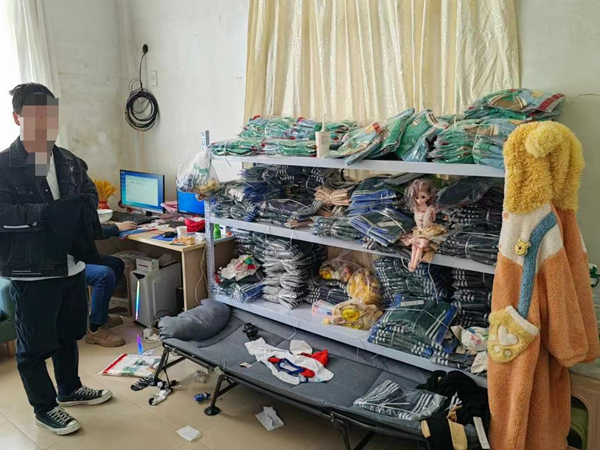 通過調查發現,常山縣公安局迅速鎖定店鋪經營人員及倉庫地址。5月初,常山警方搗毀在江蘇某地的特大銷售假冒注冊商標案件造假窩點,抓獲犯罪嫌疑人10名,查獲假冒品牌衣服8000余件及大量假冒注冊商標掛牌,現場還發現大量已包裝好準備寄出的快遞,涉案價值約500余萬元。