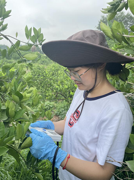 為了確保實驗數據的可靠性,一個完整的實驗周期要從胡柚施春肥到開花期、幼果期、膨果期直至成熟期,方能得出胡柚全生命周期碳排放的結論和計算公式,這需要一段時間,但鄧燕通過日常觀察和調研發現的一些問題,對指導果農科學種植上已產生了效果?!氨热鐐鹘y觀念是‘施肥越多,產量越高’,但是我們的研究結果是過量投入肥料會導致果實品質下降、土壤質量降低和溫室氣體排放量增加?!币虼怂ㄗh果農將每公頃500千克的氮肥使用量降至每公頃300千克,色譜氣象儀監測分析氣體樣本的結果顯示,氧化亞氮的排放有了明顯的減少。