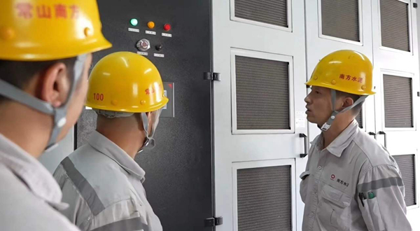 在窯頭排風變頻器室,安裝了2臺高壓變頻器。常山南方強電工程師鄭衛軍介紹,以前窯頭排風機采用風門控制,電機全頻運行,能耗高,2020年企業對窯頭排風機進行升級改造,根據生產需要風量,調整電機輸出功率,每臺變頻器一年可節約成本約50萬元,整個生產區共有15臺,全年可節省電費700多萬元。