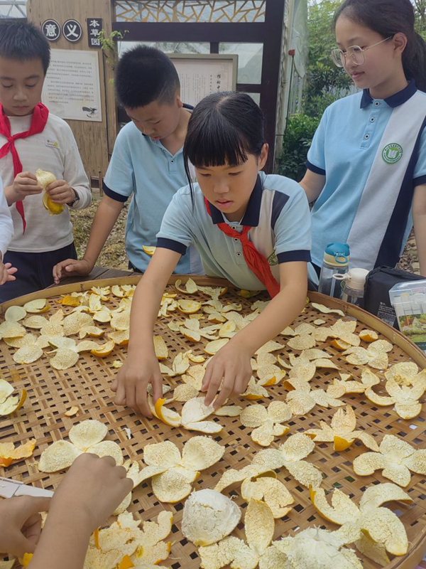 學生通過制作陳皮,收集橘絡,制作并品嘗橘子湯,體會到勞動的艱辛和豐收的喜悅。通過學習橘子各部分的藥用價值,橘皮的制作,了解中醫藥的知識,體會老祖宗的智慧。