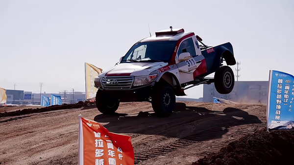 隨著計時燈亮起,車手們馬力全開,如離弦之箭般飛馳而出,在賽道上飛躍上坡、漂移過彎,整個賽道黃沙飛濺。