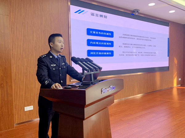 深入企業一線,送宣上門,在先導精密等企業?;顒蝇F場,通過現場解答、案例普法等形式,對網絡謠言的慣用手法、如何識別網絡謠言和造謠的法律代價進行宣傳講解,向群眾宣傳網絡謠言防范知識及相關法律法規,倡導群眾積極向公安機關舉報網絡謠言線索。