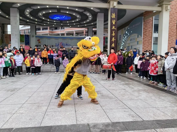 第一篇章,龍獅共舞。祥龍引路、瑞獅開道,一早學校門口鑼鼓喧天,熱鬧非凡。龍獅夾道歡迎,寓意甲辰龍年北小學子迎福納祥,龍精虎猛,身心康健,學業更進一步。