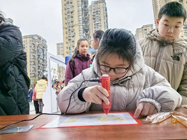 第三篇章,“糖”趣橫生。以銅勺為筆,以糖液作墨,手腕翻轉,游刃有余,糖液揮灑而下,片刻之間,一副糖畫就完成了。舔上一口,甜蜜的美味在舌尖上蕩漾開來,味蕾的滿足傳遞的便是幸福的味道!