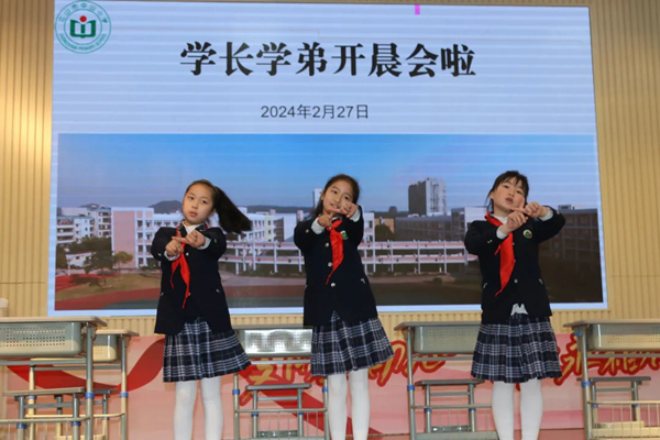 通過學生自主主持的晨會課,規范自身言行,團結一心,邁步新學期。