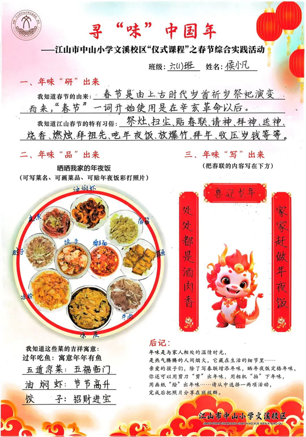 “雙減”之后,寒假里的春節怎么安排?“年文化”是中國人特有的文化記憶。江山市中山小學文溪校區六年級組組織回顧了以“尋味中國年”為主題的春節實踐活動。
